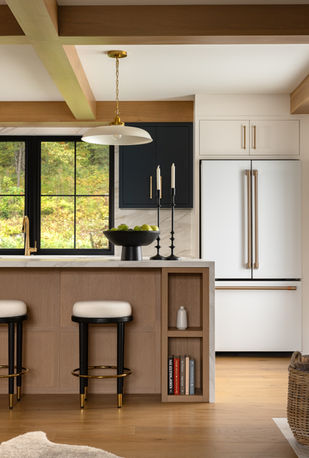 A warm, modern home designed with clean lines, natural materials, and thoughtful architectural detail. Light-filled spaces, layered wood tones, and bold contrasting accents create a cohesive atmosphere that feels both elevated and inviting. Throughout the home, custom millwork, statement lighting, and refined finishes add depth and sophistication. Large windows frame the surrounding landscape, enhancing the airy feel, while a mix of soft neutrals and rich colors brings balance and character. The result is a contemporary yet timeless home crafted for comfortable everyday living and effortless entertaining.